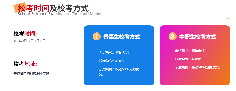安徽国防科技职业学院高职单招/分类测验为考生供给了实现升学胡想的优良平台。通过科学备考、合理规划,考生定能正在测验中脱颖而出,夸姣的大学糊口。前往搜狐!